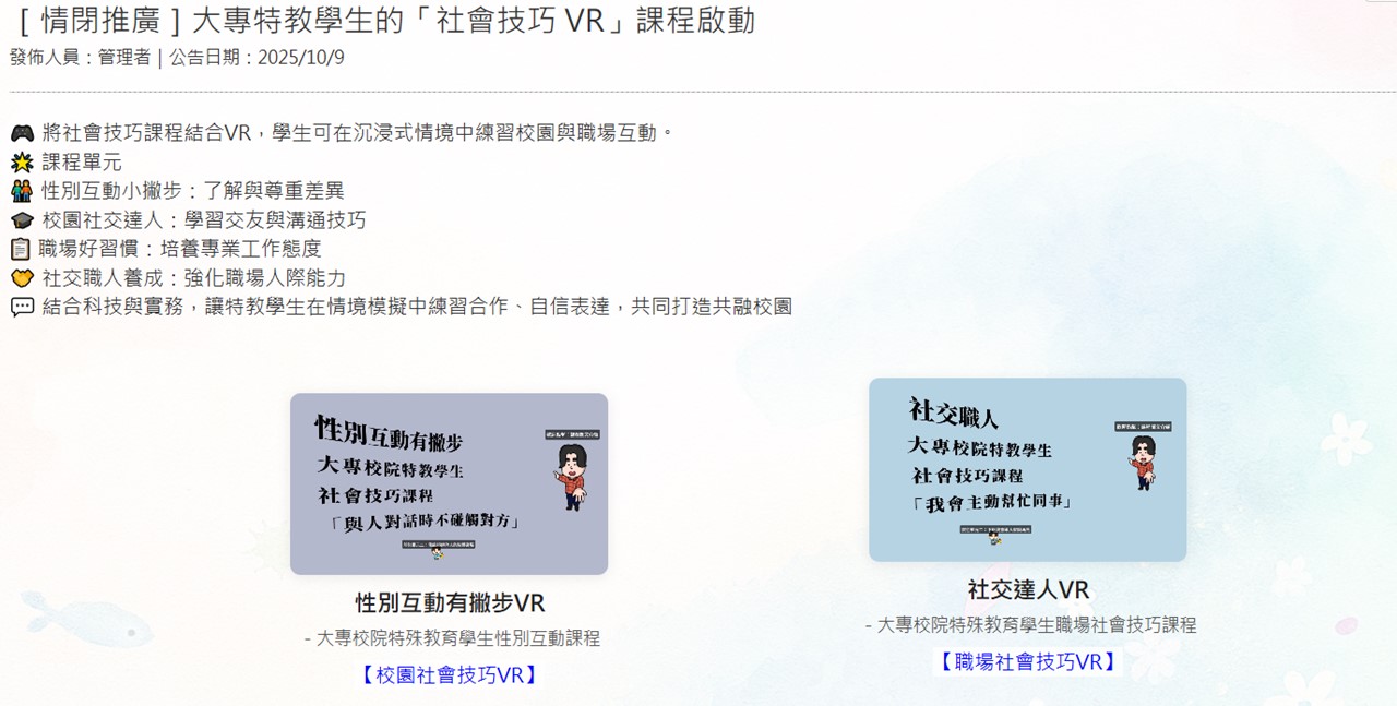 大專特教生 × 社會技巧 VR 課程開始囉!