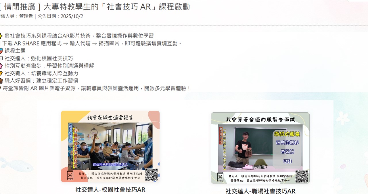 大專特教生 × 社會技巧 AR 課程開始囉!