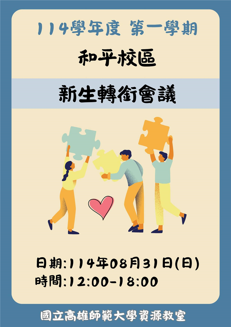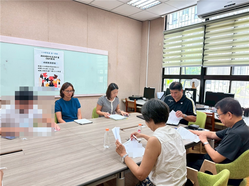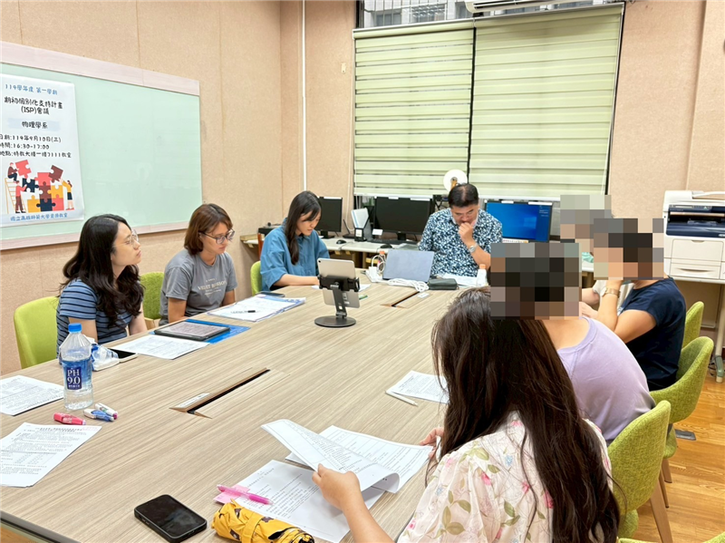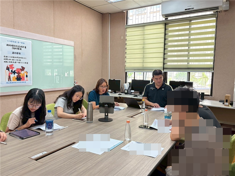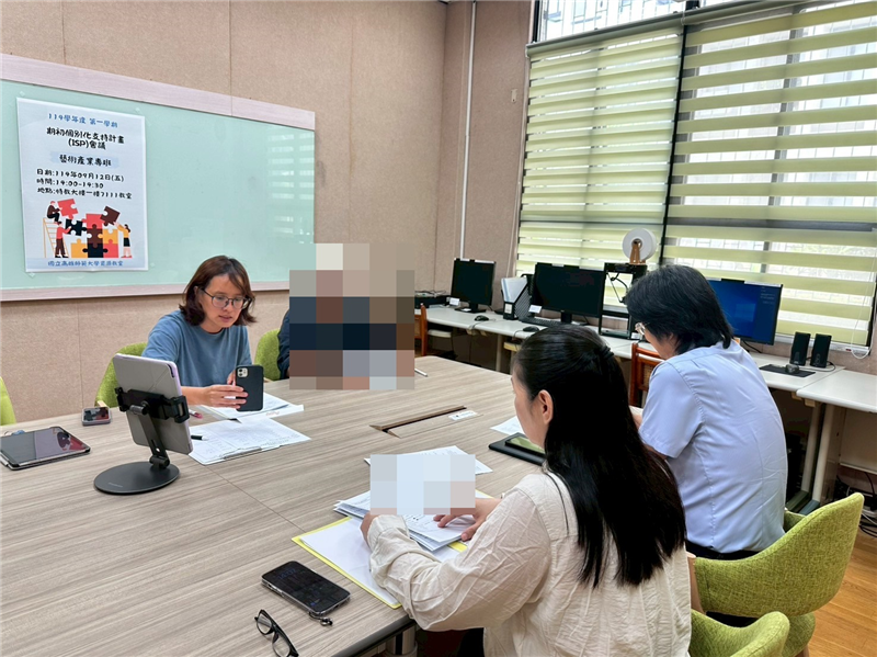 為協助大一新鮮人在高師大順利開啟大學新生活,和平校區共召開5場次的新生轉銜會議,分別有視設系、音樂系、特教系、地理系的系主任、導師及家長、學生共同參加。資源教室輔導員在會議前運用特蒐四表單及SBASA量表了解學生能力現況,會議中進行特教需求說明,在特教中心蔡主任的主持下,讓系所、資源教室、學生及家長三方可以建立初步溝通橋梁,銜接大專所需支持協助。