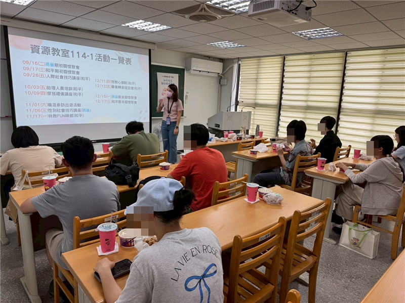 資源教室於和平校區辦理期初聚會,邀請學生於中午時間一起聚會,關心學生選課、學習及生活適應情況,並請學生填寫相關量表,讓輔導員可以更了解學生的整體身心適應情況。