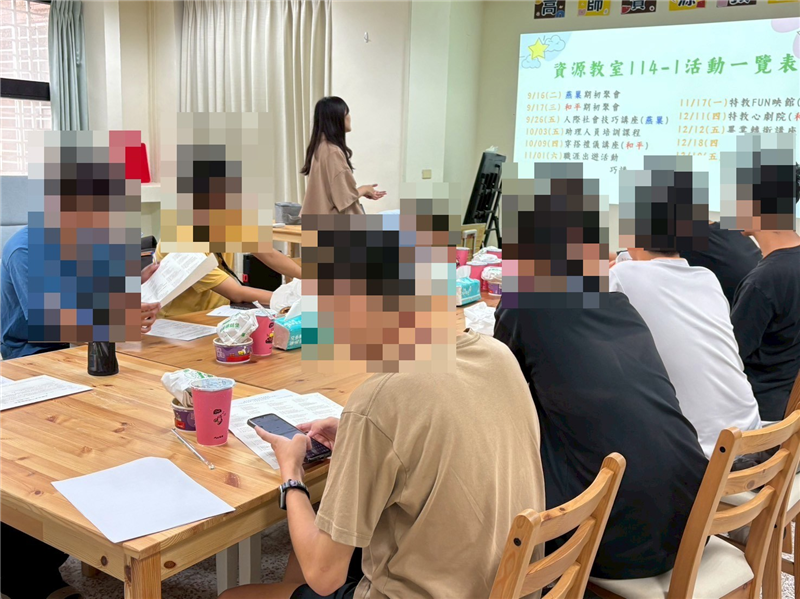 會議過程中,資源教室輔導員針對每位學生的障別特性與個別需求進行詳細說明,內容涵蓋課堂助理人員安排、任課通知信發送、學習規劃及相關支持服務。家長也積極參與討論,分享學生在生活與學習上的觀察與需求,與會師長亦說明學生在班級中的學習情形,藉此建立完整的資訊交流平台,確保跨單位協作順暢,促進學生在學習、生活及未來職涯上的整體發展。