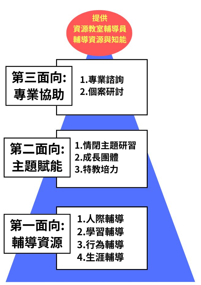 計畫自2022年執行至今,團隊廣泛蒐集國內外文獻,結合精神科醫師、心理師、特教專家與資深輔導員的專業意見,持續討論與實務交流集結計畫三年來的實際執行經驗,建構且持續修正調整以資源教室輔導員需求為本位的、符合現場需求的「大專校院情緒行為障礙與自閉症學生輔導支持架構」(蔡明富、林寶鈺,2023)。三面向內容簡介如下:
