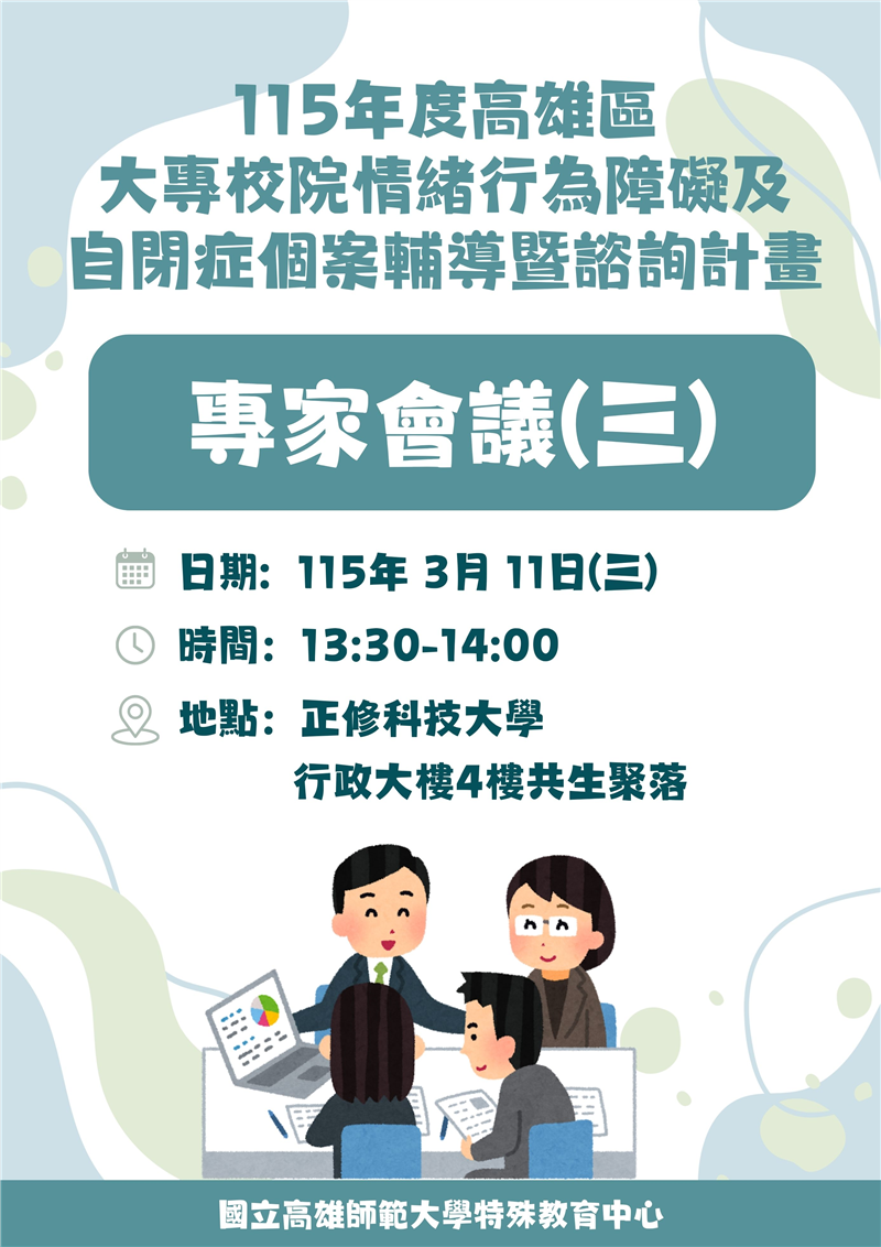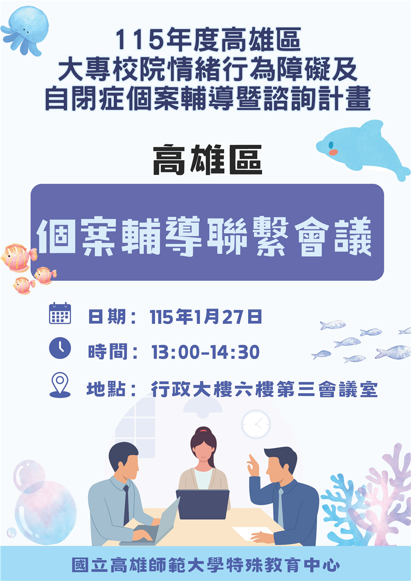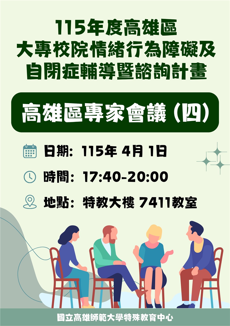 ◆115年度高雄區情閉計畫:大專校院情緒行為障礙學生醫療處遇研習