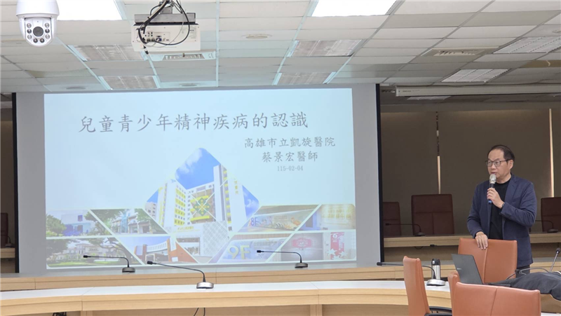 1. 115年2月4日辦理「大專校院情緒行為障礙學生醫療處遇研習」,本中心邀請高雄市立凱旋醫院兒童及青少年精神科主任蔡景宏醫師擔任講師。本研習旨在提升資源教室輔導人員對情緒行為障礙學生特質及其醫療協助策略的認識,並透過實務個案分享,強化對大專情障學生的輔導與協助效率。