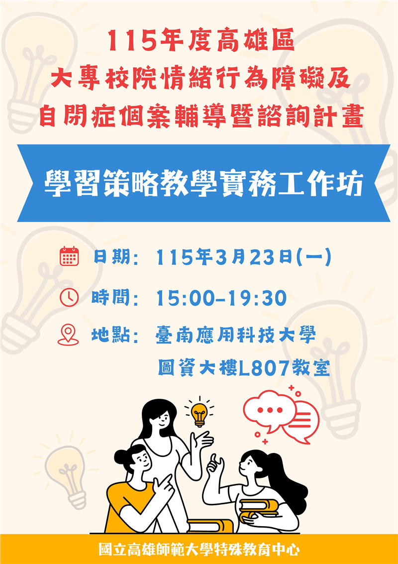 ◆115年度高雄區情閉計畫:學習策略教學實務工作坊(一)
