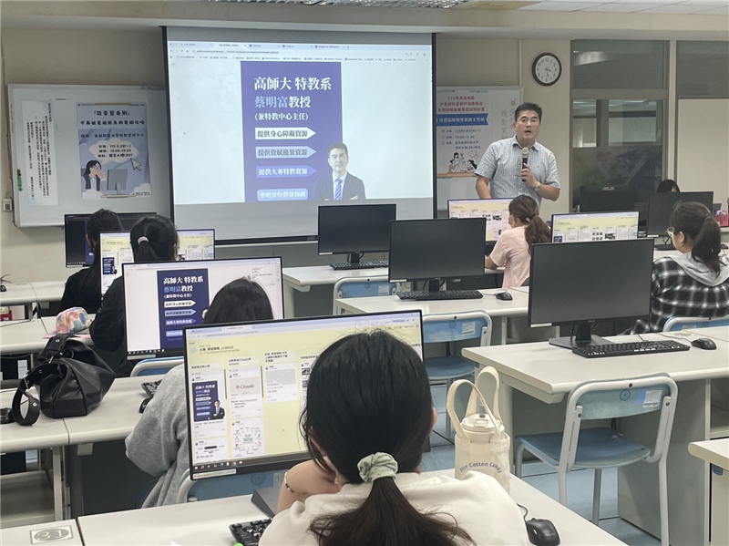 1.本次學習策略教學實務工作坊與臺南應用科技大學資源教室合作,由高師大特教中心蔡明富主任、李睿欣助理擔任講師。以國立臺南應用科技大學情緒行為障礙與自閉症學生為對象,導入生成式AI與數位媒體工具,提升學習動機與參與度。