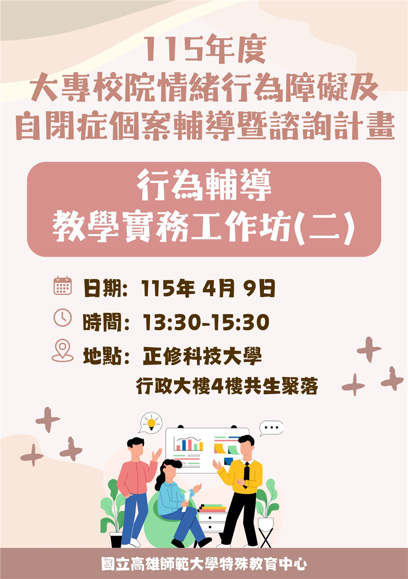 ◆115年度高雄區情閉計畫:行為輔導教學實務工作坊(二)