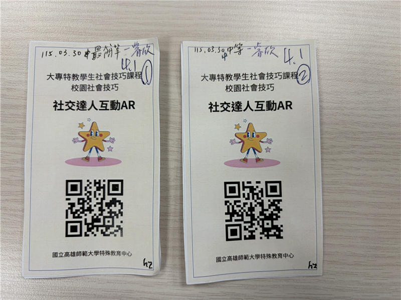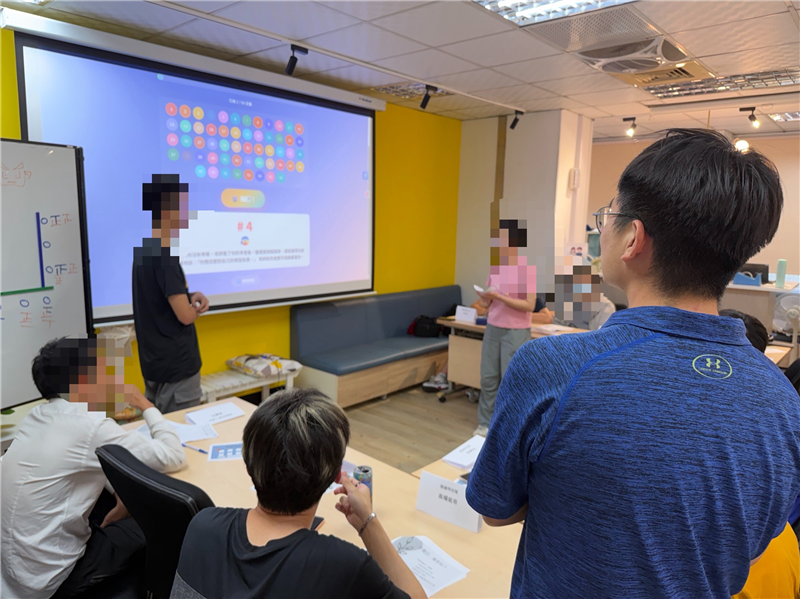 - 第四堂課由彭志文輔導員分享大專校園實務經驗,運用「心情溫度計」卡牌與影音素材,引導學生辨識情緒並進行討論。課程鼓勵學生表達想法,營造安全學習氛圍,並分享自編學習單與 AI 輔助教材製作。最後由林寶鈺輔導員說明社會技巧課程在資源教室的角色,並建議於 ISP 中納入相關課程連結,延伸學習資源。