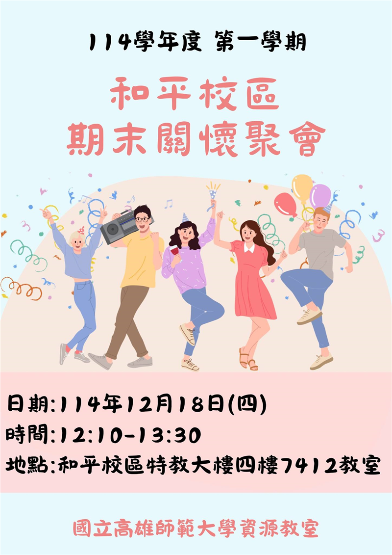 資源教室於學期尾聲辦理和平期末關懷聚會,邀請同學們齊聚交流。活動中,輔導員關心同學這學期的課業及生活適應狀況,提醒期末考即將到來,如果有考試調整需求及早提出。透過本次聚會,讓同學們增進彼此互動,也了解期末注意事項,為緊湊的期末生活增添溫暖與支持。