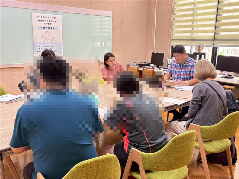 會議過程中,資源教室輔導員針對每位學生的障別特性與個別需求進行詳細說明,內容涵蓋課堂助理人員安排、任課通知信發送、學習規劃及相關支持服務。家長也積極參與討論,分享學生在生活與學習上的觀察與需求,與會師長亦說明學生在班級中的學習情形,藉此建立完整的資訊交流平台,確保跨單位協作順暢,促進學生在學習、生活及未來職涯上的整體發展。