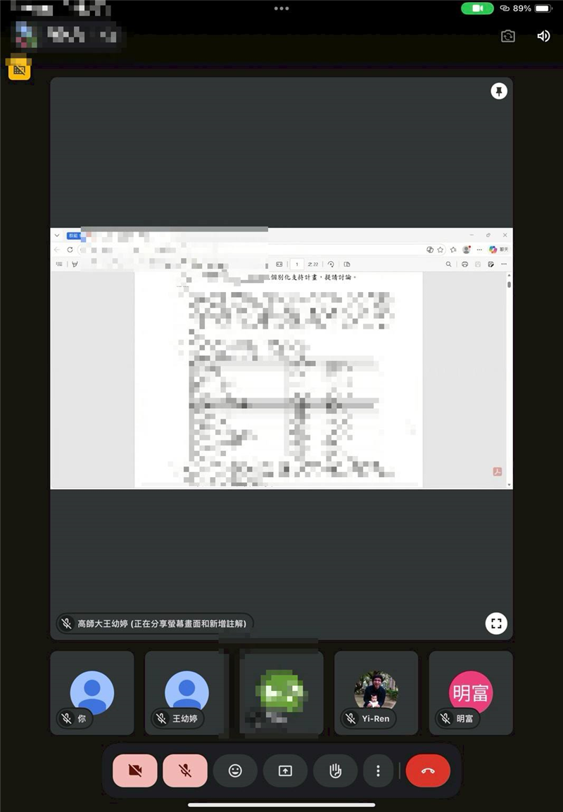 鄰近期末,資源教室邀集系主任、導師、學生家長針對學生本學期狀況進行討論並共同檢視未來ISP可再調整協助之處。