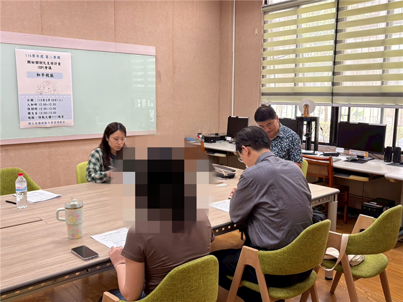 為協助大一新鮮人在高師大順利開啟大學新生活,和平校區共召開5場次的新生轉銜會議,分別有視設系、音樂系、特教系、地理系的系主任、導師及家長、學生共同參加。資源教室輔導員在會議前運用特蒐四表單及SBASA量表了解學生能力現況,會議中進行特教需求說明,在特教中心蔡主任的主持下,讓系所、資源教室、學生及家長三方可以建立初步溝通橋梁,銜接大專所需支持協助。
