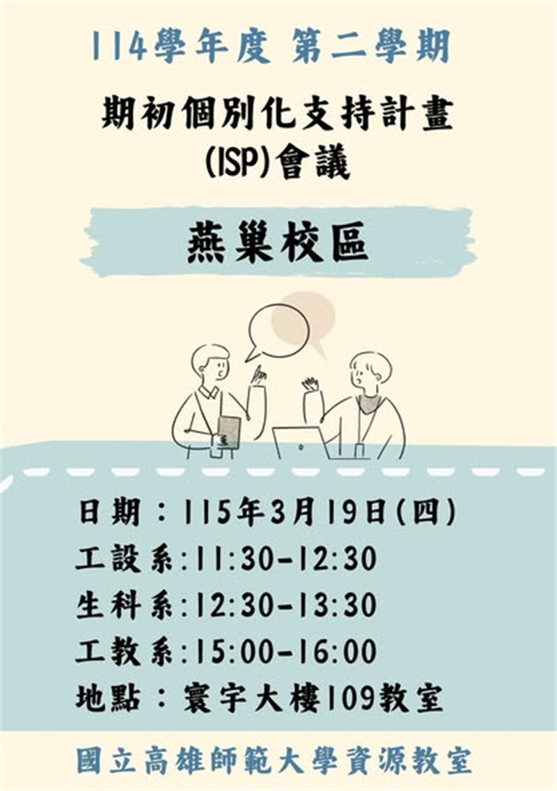 114-2 燕巢校區工設系、生科系、工教系期初個別化支持畫會議_1150319
