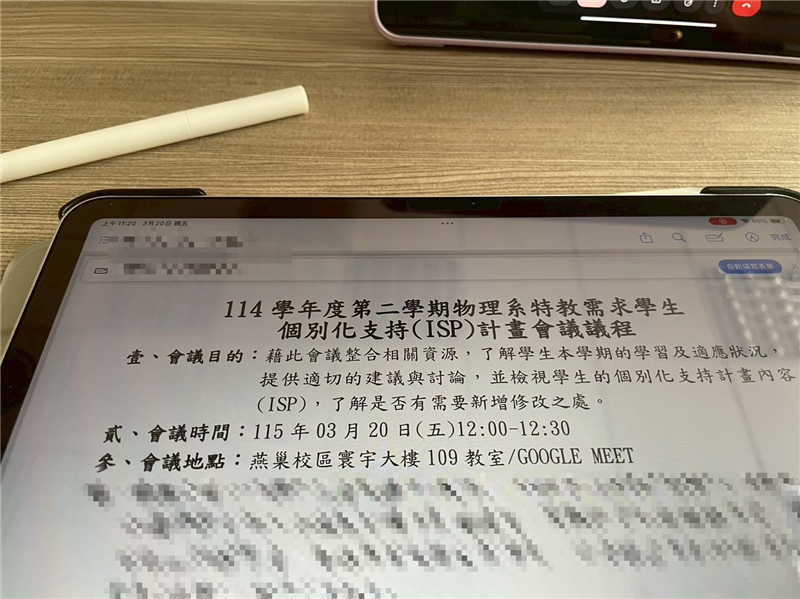 本次會議聚焦於學生學習適應及整體校園生活之支持情形,並由各系所師長提供專業建議,協助學生在兼顧學習需求與系所課程規範下,逐步建立穩定之學習模式,資源教室後續亦將持續關注學生學習與適應情形,提供必要之支持與協助。
