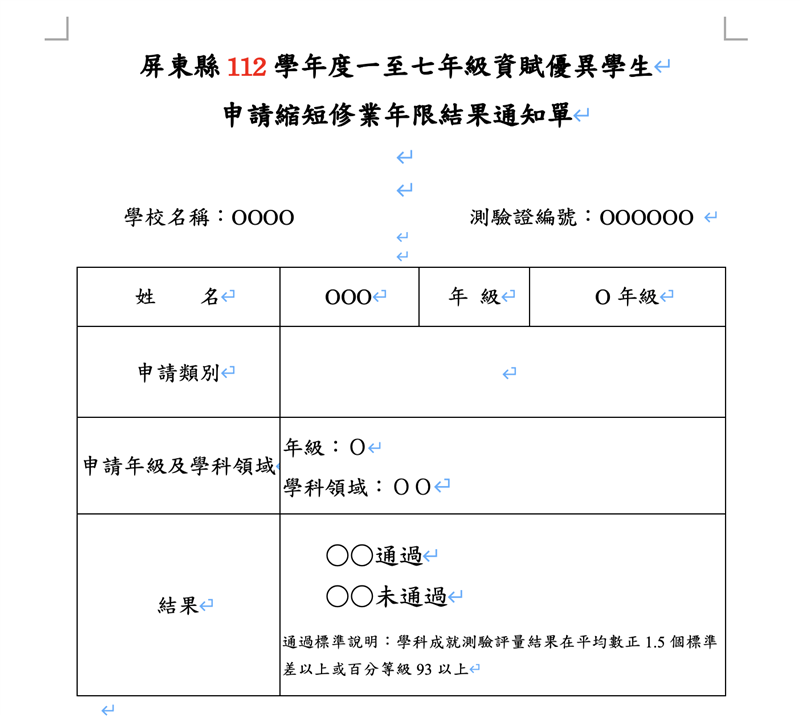 【資優鑑定_國中小縮修】屏東縣國中小縮短修業年限學生鑑定會議