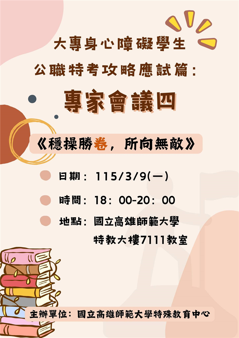 大專身心障礙學生公職特考攻略應試篇《穩操勝卷,所向無敵》專家會議四_1150309