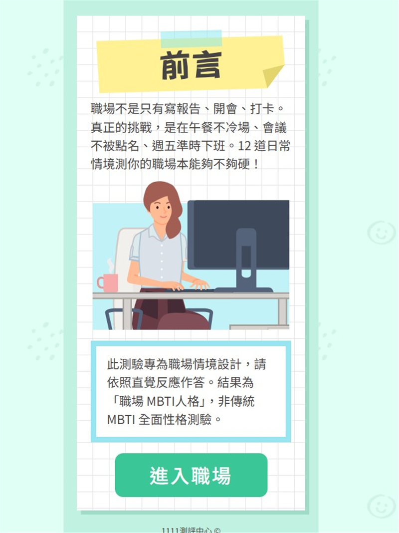 📌資訊連結:https://assessment.1111.com.tw/mbti