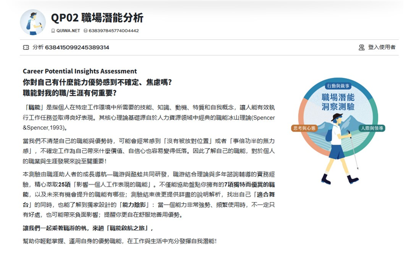 📌找出同學在個人特質、職場適應、行動實踐上的就業力樣貌,規劃自己未來的職涯吧!